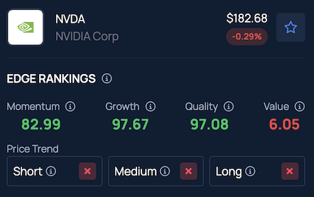 Benzinga Edge Stock Rankings indicate the stock is underperforming in the short and medium term, but shows a strong upward trend over the long term, backed by a Growth score in the 97th percentile.
