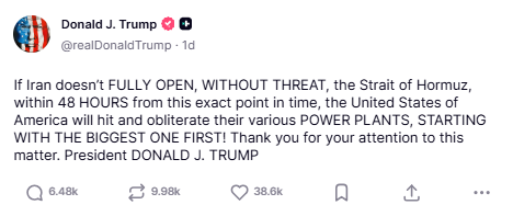 Despite this ultimatum, tensions escalated further on Monday as Iran threatened to target U.S. and allied energy and IT infrastructure.