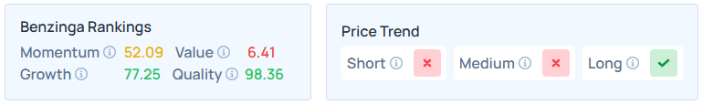 Benzinga’s Edge Stock Rankings indicate that AAPL maintains a weak price trend over the short and medium terms but a strong trend in the long term, with a solid growth score.