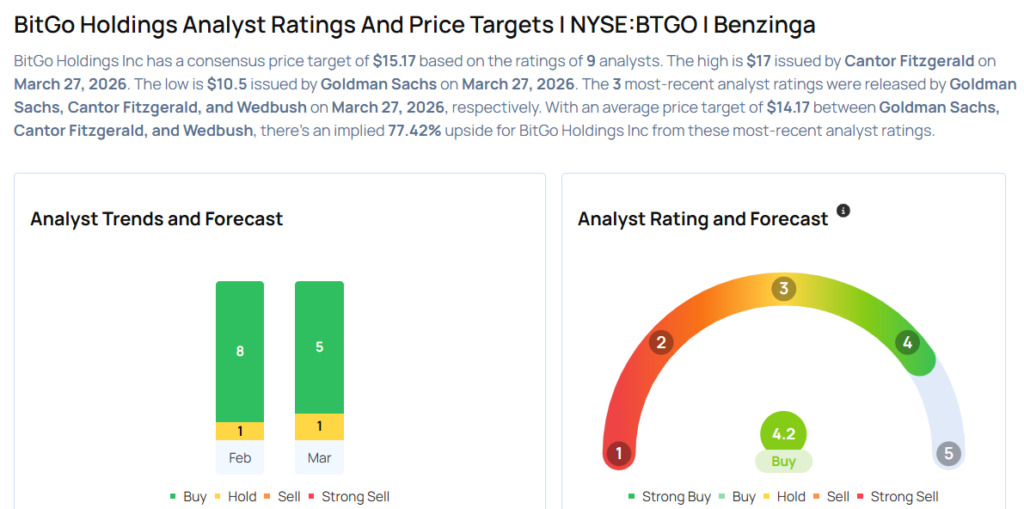 - Goldman Sachs analyst James Yaro maintained BitGo with a Neutral and lowered the price target from $12 to $10.5.
