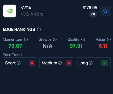 Benzinga Edge Stock Rankings show that Nvidia stock has Momentum in the 79th percentile and Value in the 6th percentile.