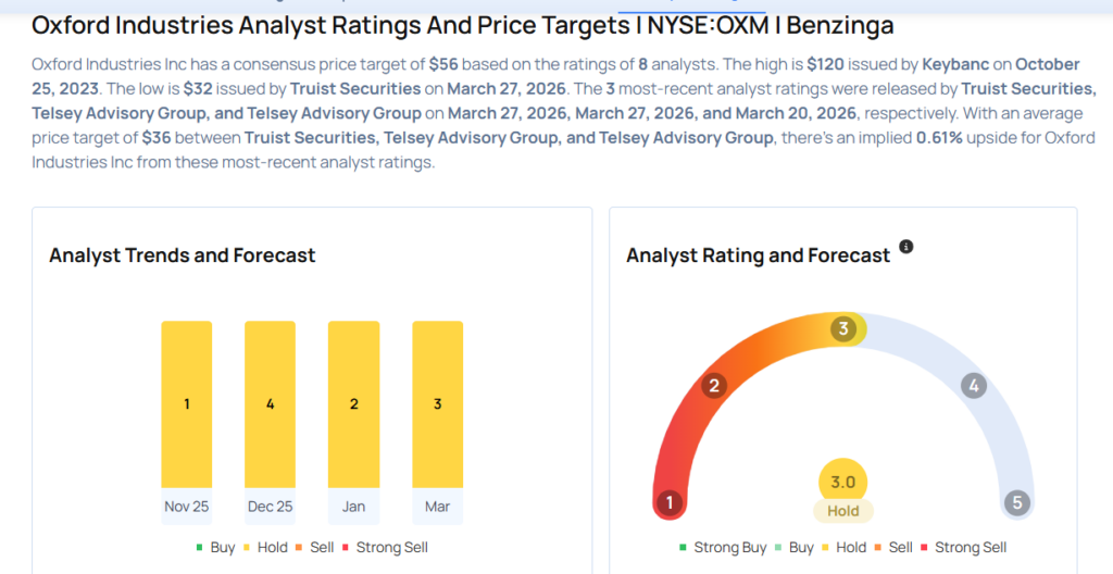 - Telsey Advisory Group analyst Dana Telsey maintained Oxford Industries with a Market Perform and lowered the price target from $40 to $36.
