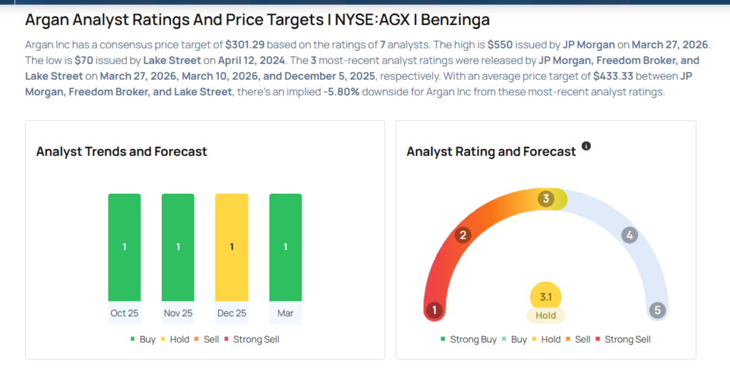 - JP Morgan analyst Michael Fairbanks upgraded Argan Inc (NYSE:AGX) from Neutral to Overweight and announced a $550 price target. Argan shares closed at $410.85 on Thursday. See how other analysts view this stock.