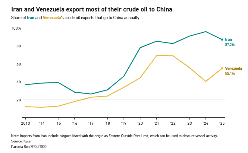 US military actions against Iran and Venezuela have disrupted as much as 18% of China’s oil imports. The moves threaten to erode Beijing’s leverage over the US economy — a key Trump administration objective — and unwind years of its economic dominance.