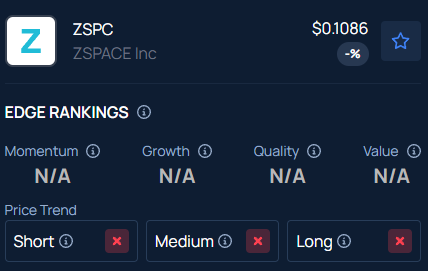 Benzinga’s Edge Stock Rankings indicate that ZSPC has a negative price trend across all time frames.