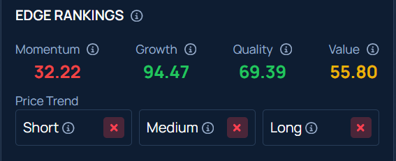 Amazon stock lags in short-, medium-, and long-term price trends but shines with a top Growth score on Benzinga’s Edge Rankings.