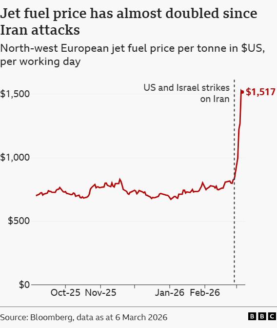 Why it matters: For airlines and consumers, the concern is not just higher prices. It is the prospect of a genuine supply squeeze if Middle East disruptions persist. A sustained spike in jet fuel costs would force carriers to raise fares more aggressively, cut capacity, or delay routes. This would tighten travel conditions just as demand is recovering.