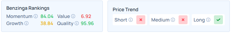 • Benzinga’s Edge Stock Rankings indicate that AVGO maintains a strong price trend in the long term but a weak trend in the medium and short terms, with a solid growth score.