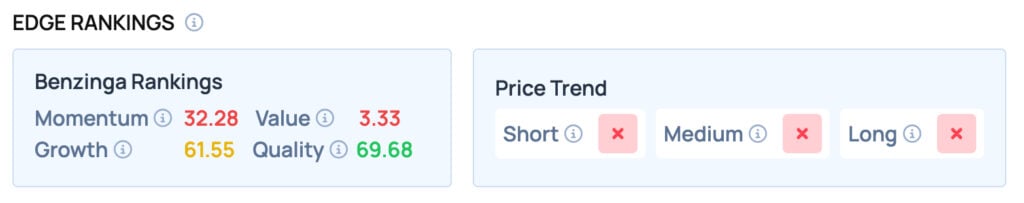 According to Benzinga Edge Rankings, Tesla offers poor Momentum and satisfactory Growth, but fails to provide a favorable price trend in the Short, Medium and Long term.