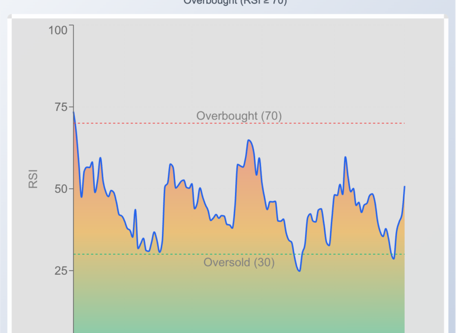 Brief dips into oversold territory near 25 and occasional pushes toward the low-60s suggest short-term trading cycles rather than sustained overbought or oversold conditions.