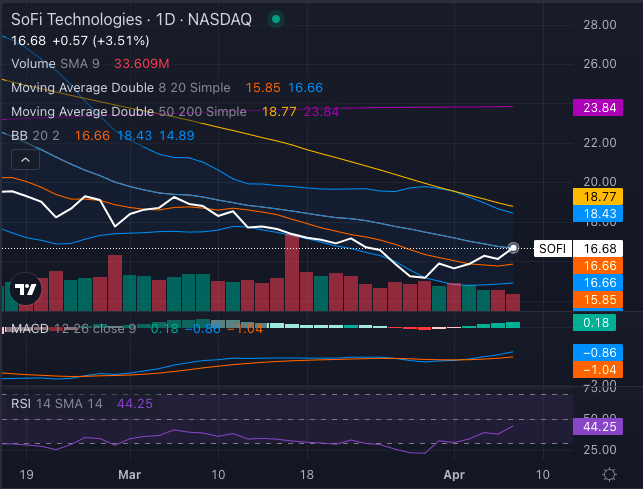 SoFi is trading below its 50-day (~$18.70) and 200-day (~$23.80) moving averages, keeping the broader trend under pressure. While price has bounced recently, it’s still struggling to reclaim key resistance zones.