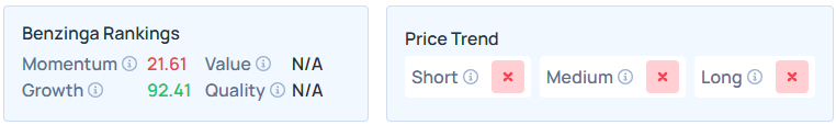 - Benzinga’s Edge Stock Rankings indicate that SOFI maintains a weak price trend in the short, medium, and long terms, with a solid growth score.