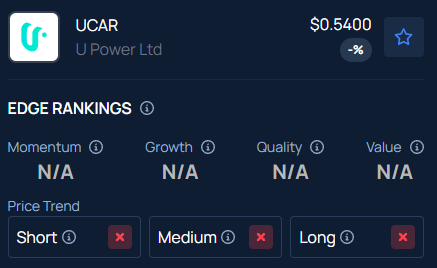 Benzinga’s Edge Stock Rankings indicate UCAR stock has a negative price trend across all time frames.