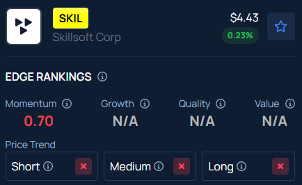 Benzinga’s Edge Stock Rankings indicate that SKIL has a negative price trend across all time frames.