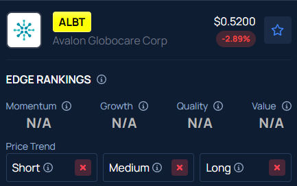 Benzinga’s Edge Stock Rankings show that ALBT is exhibiting a negative price trend across all time frames.
