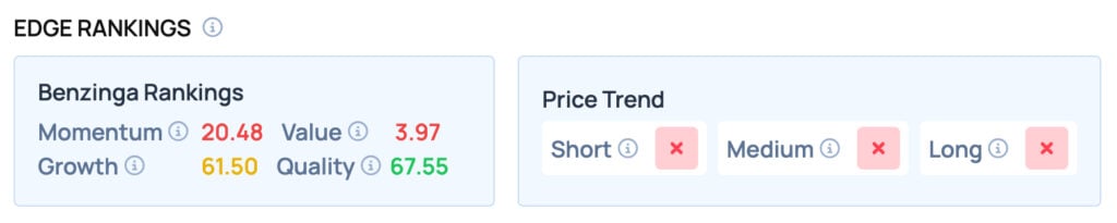 According to Benzinga Edge Rankings, Tesla offers satisfactory Growth, but fails to provide a favorable price trend in the short, medium, and long term.