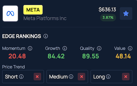 Meta stock ranks in the 89th percentile for Quality in Benzinga Edge Ratings, but is currently trending downward across short, medium and long-term timeframes.