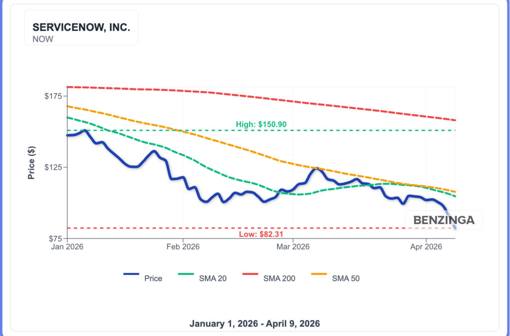 NOW Price Action: ServiceNow shares were down 8.15% at $82.49 at the time of publication on Friday. The stock is trading at a new 52-week low, according to Benzinga Pro data.