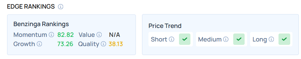 • Benzinga’s Edge Stock Rankings indicate that GS maintains a strong trend in the short, long, and medium terms, with a solid Momentum score.