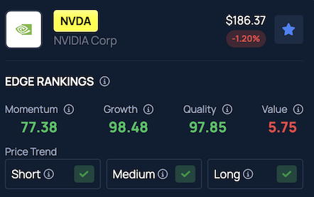 NVDA ranks in the 97th percentile for Quality on Benzinga Edge, signaling strong performance across short, medium and long-term trends.