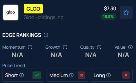 Benzinga’s Edge Stock Rankings indicate that GLOO is experiencing short-term upward movement along with medium and long-term consolidation.