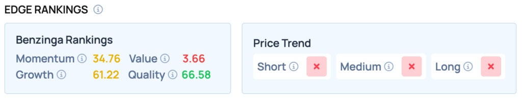 According to Benzinga Edge Rankings, Tesla offers satisfactory Growth and Momentum, but fails to provide a favorable price trend in the short, medium, and long term.