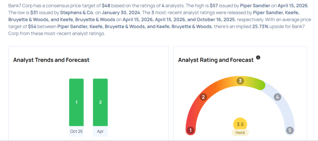 - Keefe, Bruyette & Woods analyst Woody Lay maintained Bank7 with an Outperform rating and lowered the price target from $53 to $52.
