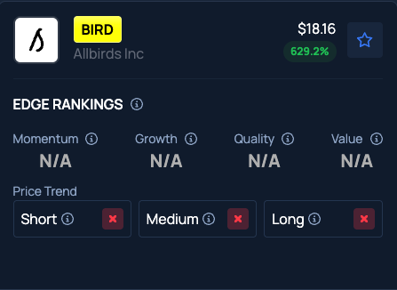 Benzinga Edge Stock Rankings show AllBirds stock doesn’t check out on Short, Medium And Long Price Trends.