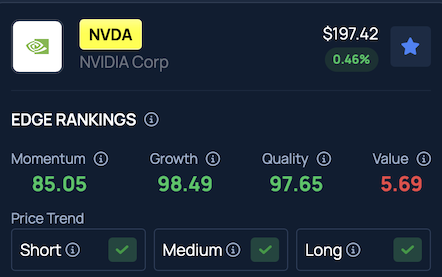 NVDA is in the 97th percentile for Quality on Benzinga Edge, reflecting strong performance across short, medium and long-term trends.