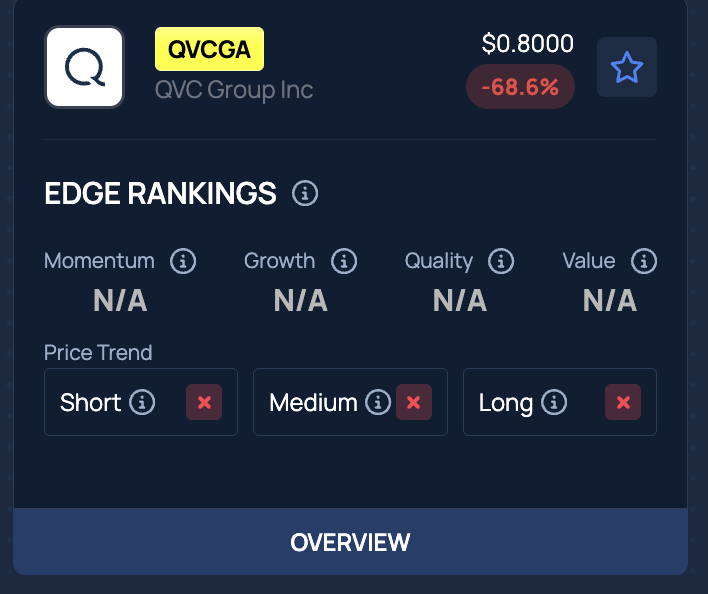 Benzinga’s Edge Stock Rankings show that QVC Group is exhibiting a negative price trend across all time frames.