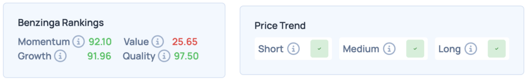 • Benzinga’s Edge Stock Rankings indicate that TSM maintains a strong price trend in the short, medium, and long terms, with a solid growth and momentum score.