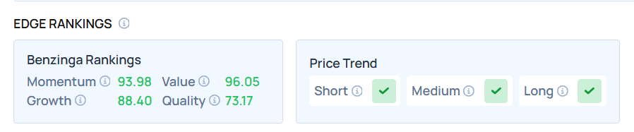 - Edge Stock Ratings: 93.98 Momentum score with Value at 96.05.