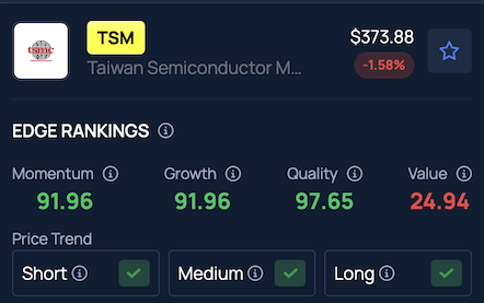 TSM ranks in the 97th percentile for Quality on Benzinga Edge, indicating strong performance across short, medium and long-term trends.