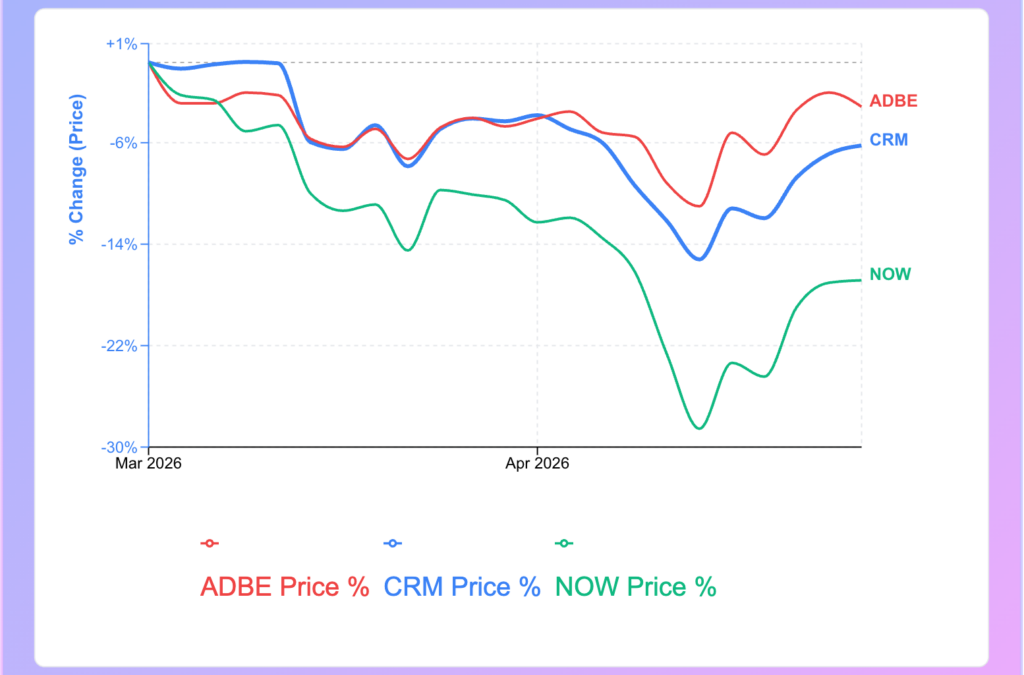 The chart below shows the one-month price action for CRM, ADBE and NOW: