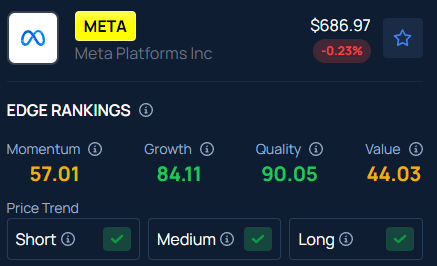 Benzinga’s Edge Stock Rankings highlight that META has a Growth score of 84.11.