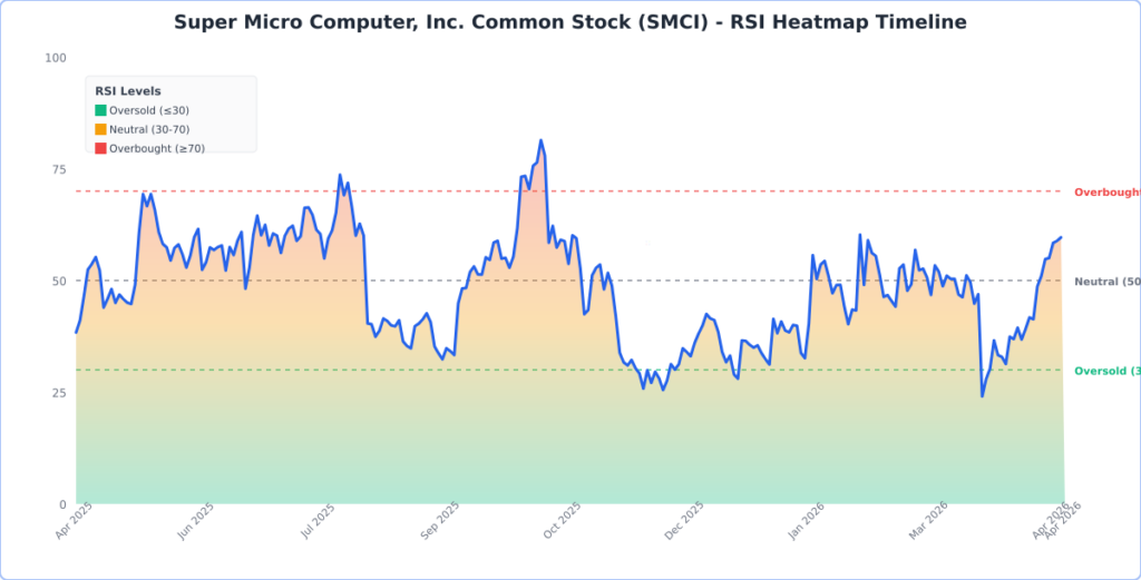 SMCI is attempting to stabilize after a sharp reset from its 2025 highs. The stock is trading 20.4% above its 20‑day simple moving average, showing improving short‑term momentum, but it remains 2.8% below its 100‑day SMA, which signals the intermediate trend has not fully turned.