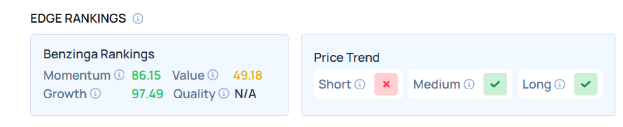 - Edge Stock Ratings: 86.15 Momentum score with Value at 49.18.