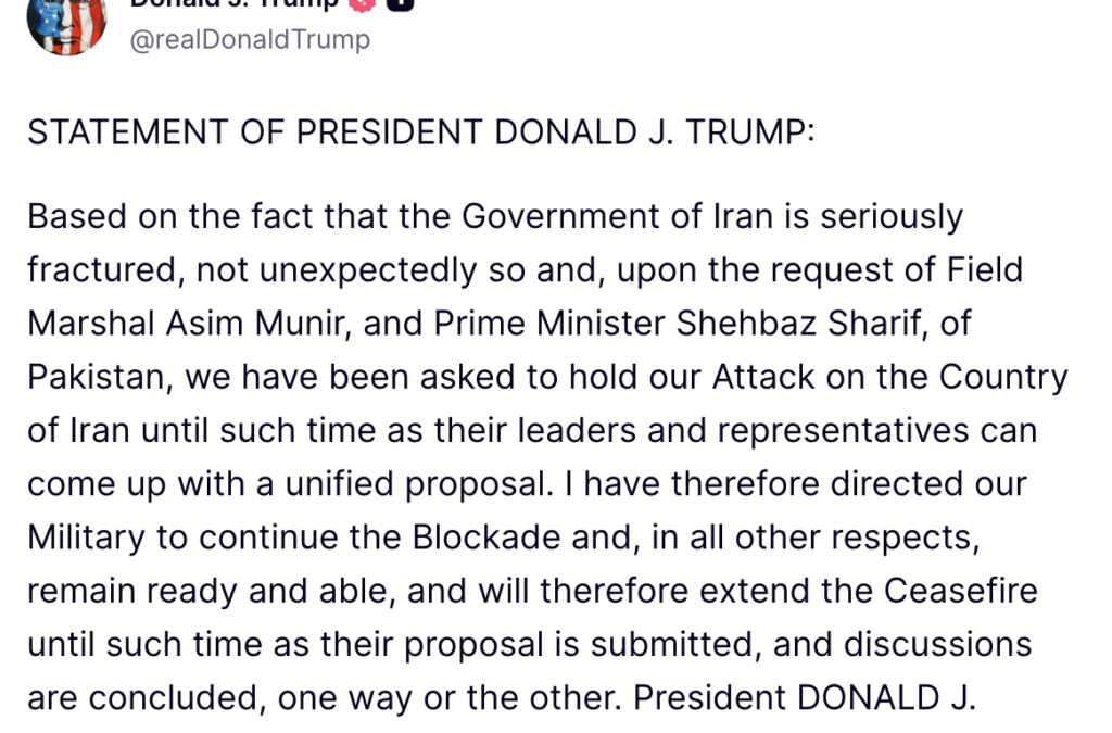 Trump Extends Ceasefire, Keeps Pressure On Iran