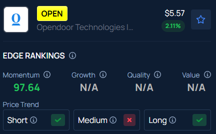 Benzinga’s Edge Stock Rankings indicate that OPEN is experiencing mid-term consolidation along with long and short-term upward movement.