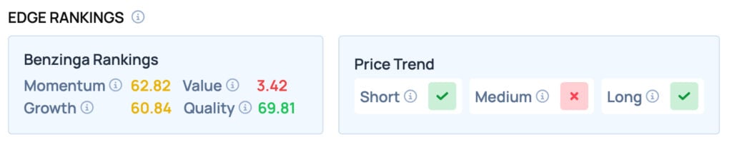 According to Benzinga Edge Rankings, Tesla offers satisfactory Momentum, but poor Value. It provides a favorable price trend in the Long term.
