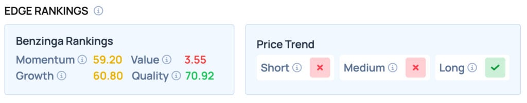 According to Benzinga Edge Rankings, Tesla offers satisfactory Momentum, but poor Value. It provides a favorable price trend in the Long term.