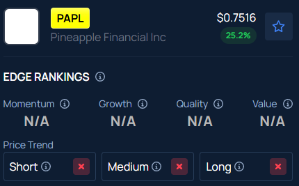 Benzinga’s Edge Stock Rankings indicate that PAPL stock is experiencing a negative price trend across all time frames.