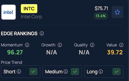 Intel ranks in the 96th percentile for Momentum on Benzinga Edge, highlighting its robust performance across short, medium and long-term trends.