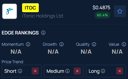 Benzinga’s Edge Stock Rankings indicate ITOC stock has a negative price trend across all time frames.