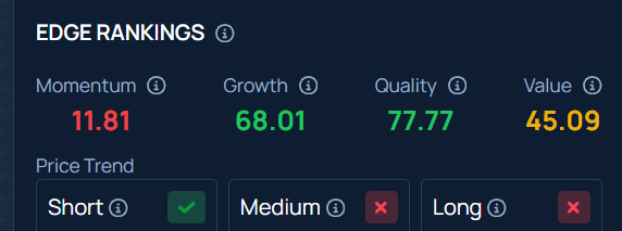 The COIN stock shows weak price performance across medium- and long-term horizons, earning a very low Momentum score in Benzinga’s Edge Stock Rankings