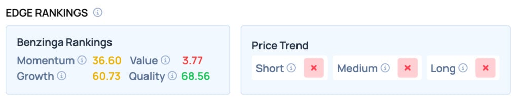 According to Benzinga Edge Rankings, Tesla offers satisfactory Momentum, but poor Value. It also fails to provide a favorable price trend in the Long term.