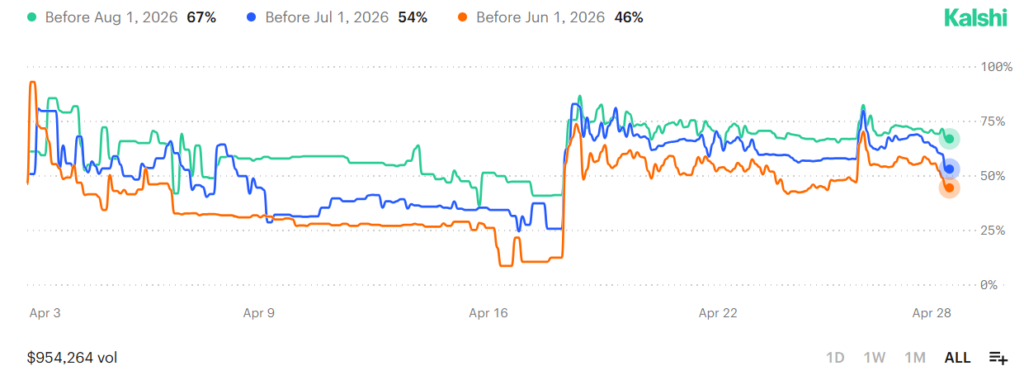 The probability that he will be removed “Before Jun 1, 2026” is also high at 46%, as per bettors.