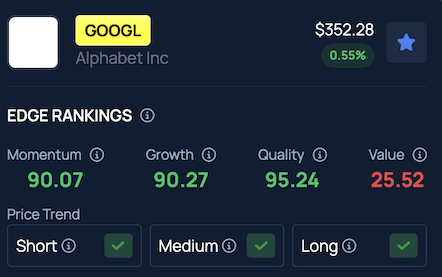 Data from Benzinga Edge shows that Alphabet Inc. (GOOGL) ranks in the 95th percentile for Quality, reflecting strong performance across short, medium and long-term trends.
