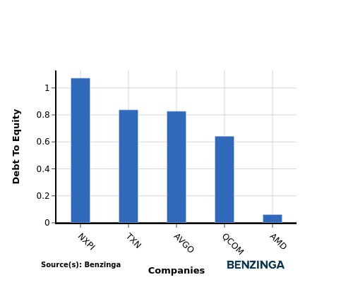 When assessing Advanced Micro Devices against its top 4 peers using the Debt-to-Equity ratio, the following comparisons can be made: